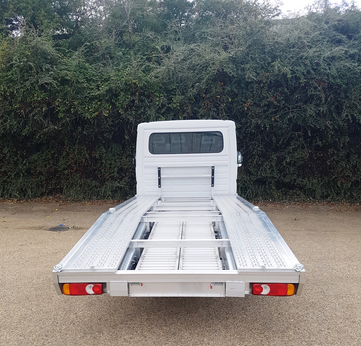 The low entry from 250 mm, GVW weight increase up to 7.490 kg, flexible dimensions and wheelbase generate endless possibilities. A manual ramp can be easily deployed to roll anything in and out of your truck.