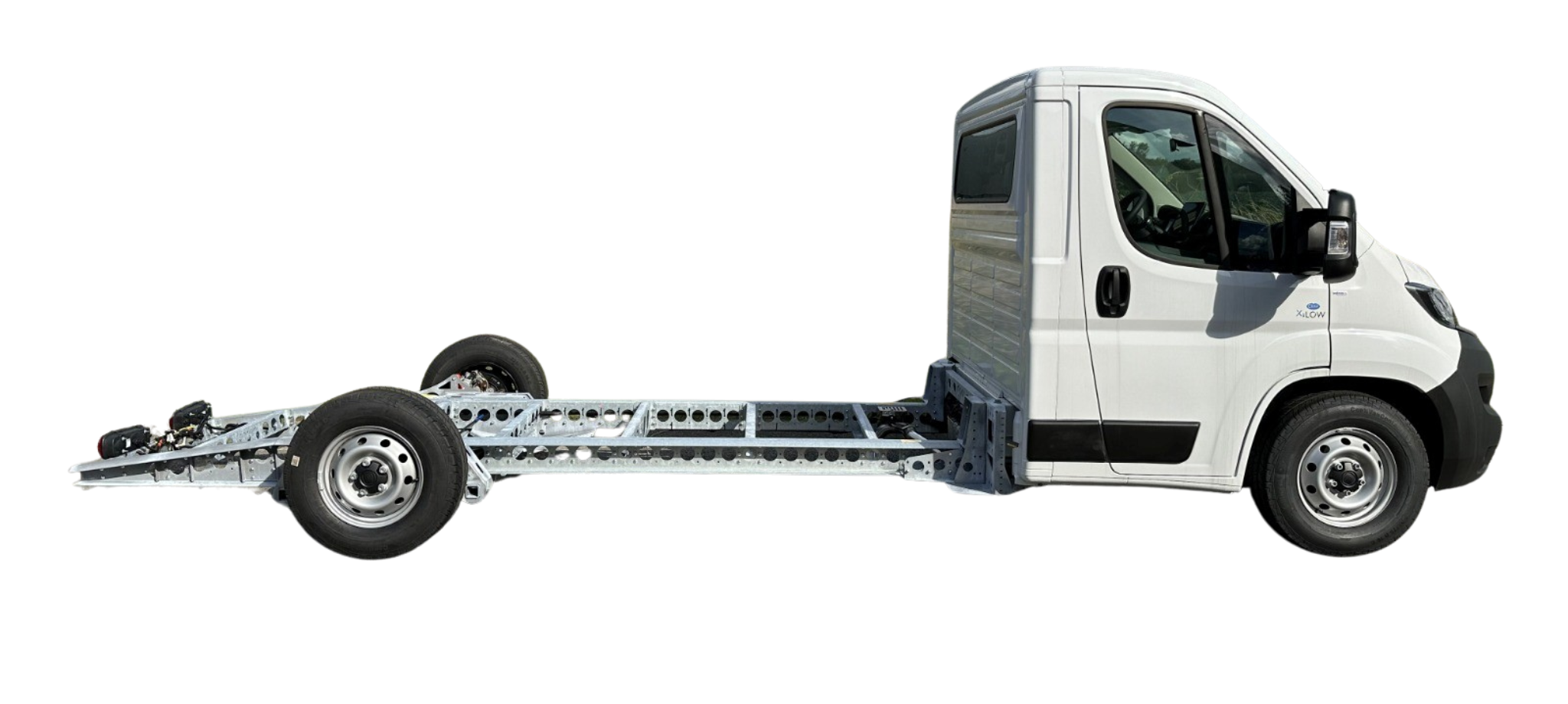 Of het nu gaat om zwaardere machines, hoogwerkers, bouwmaterialen of speciale constructies, het chassis combineert lichtgewicht en efficiëntie met een hoge belastbaarheid en rijcomfort.