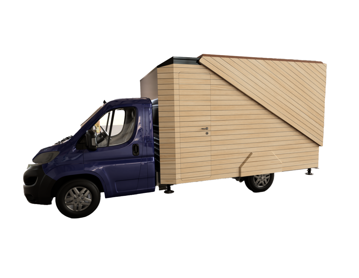 Dit mobiele kantoor biedt een verplaatsbare kantoorruimte met spreekkamer en geldautomaat. Dankzij zonne-energie en aansluiting op het lichtnet is het kantoor flexibel inzetbaar en brengt het de dienstverlening dichterbij de klant, ook voor mensen die minder mobiel zijn.