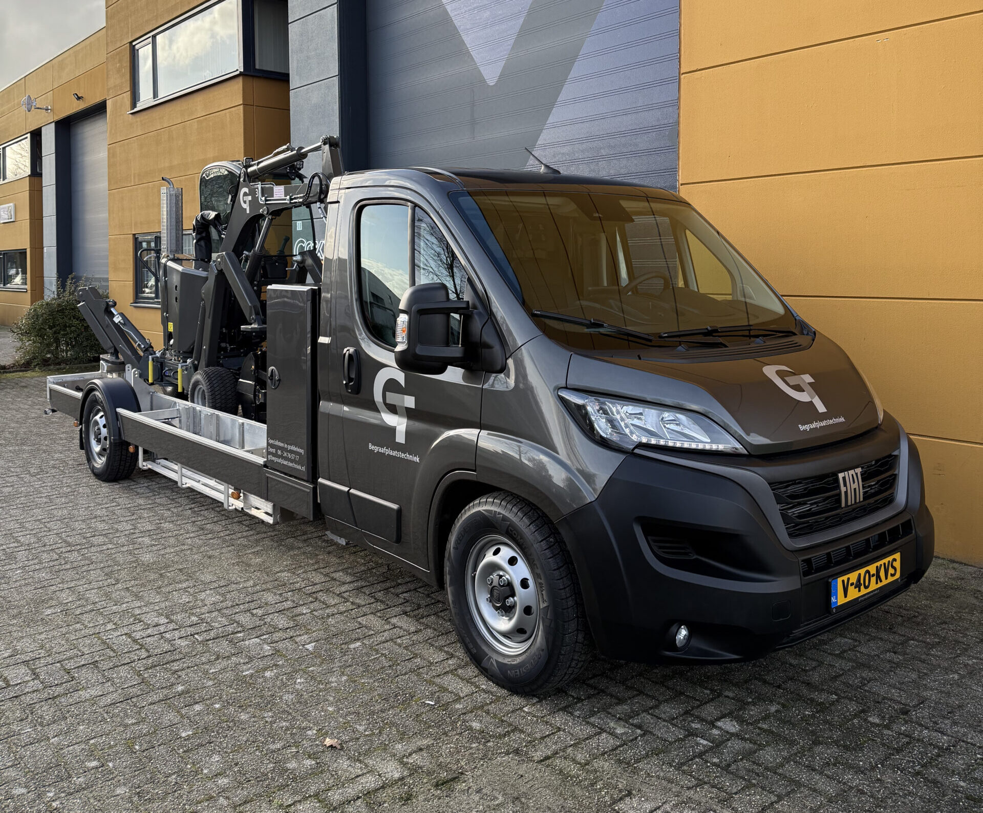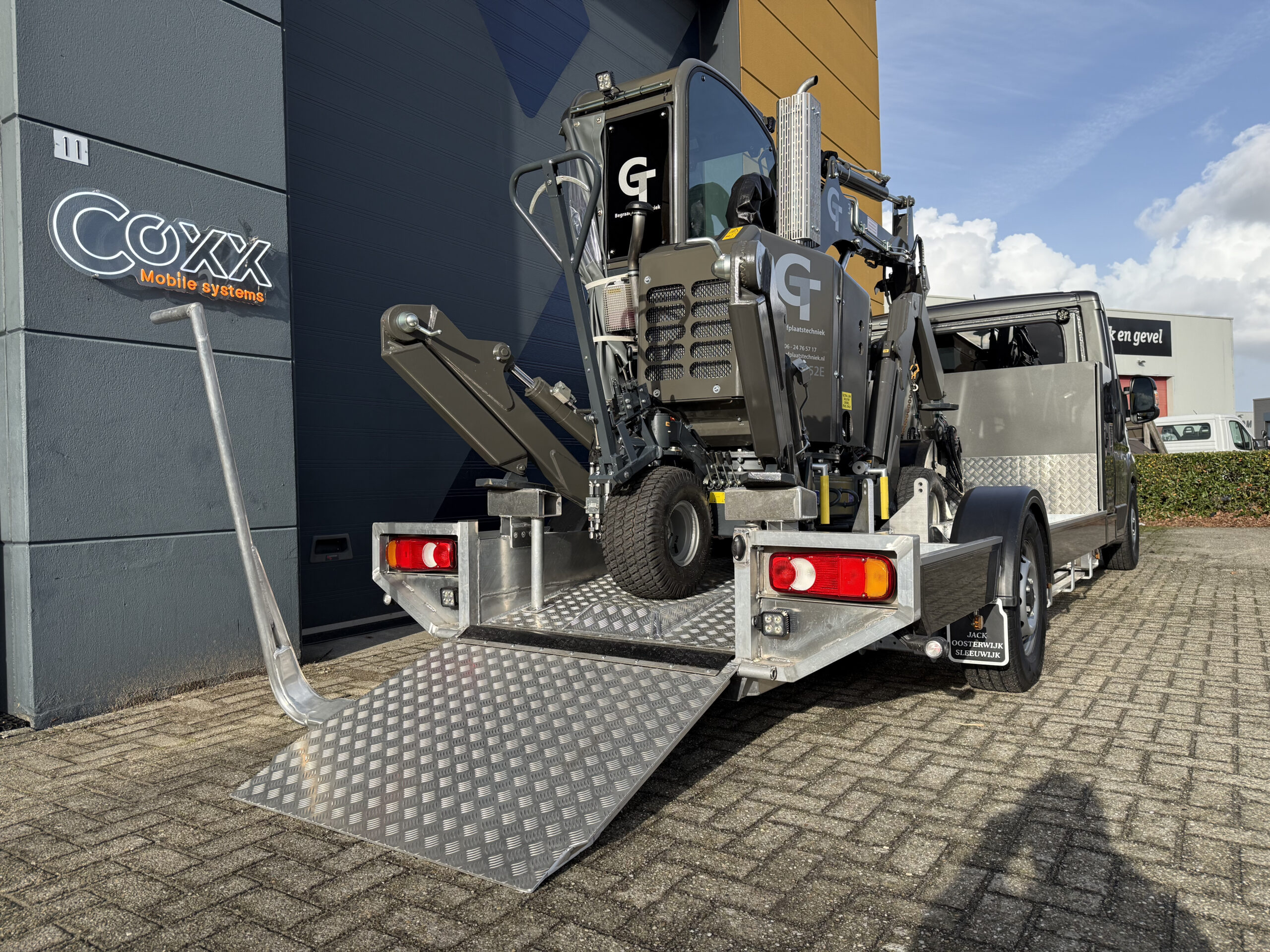 Voor GT Begraafplaats Techniek uit Dorst realiseerden we een volledig op maat gemaakte bedrijfswagen voor het veilig vervoeren van minigravers. Het modulaire X-Low chassis maakt het mogelijk om slimme techniek en optimaal rijcomfort te combineren, volledig afgestemd op de specifieke wensen die deze klant voor ogen had.